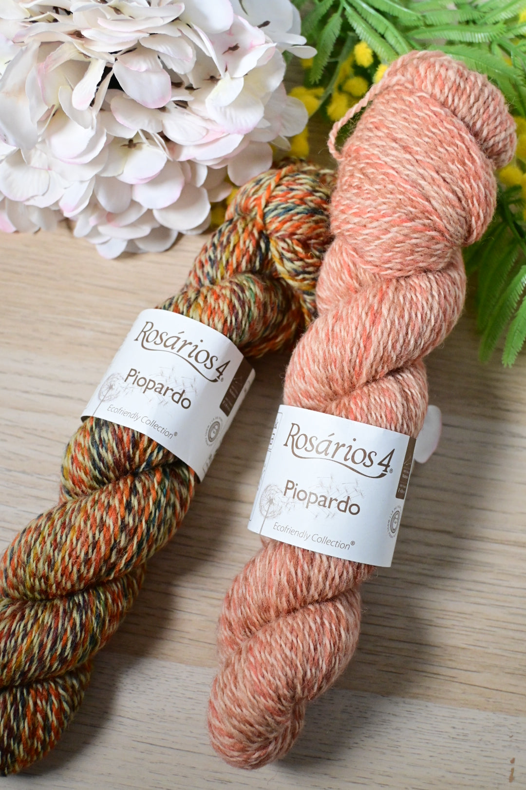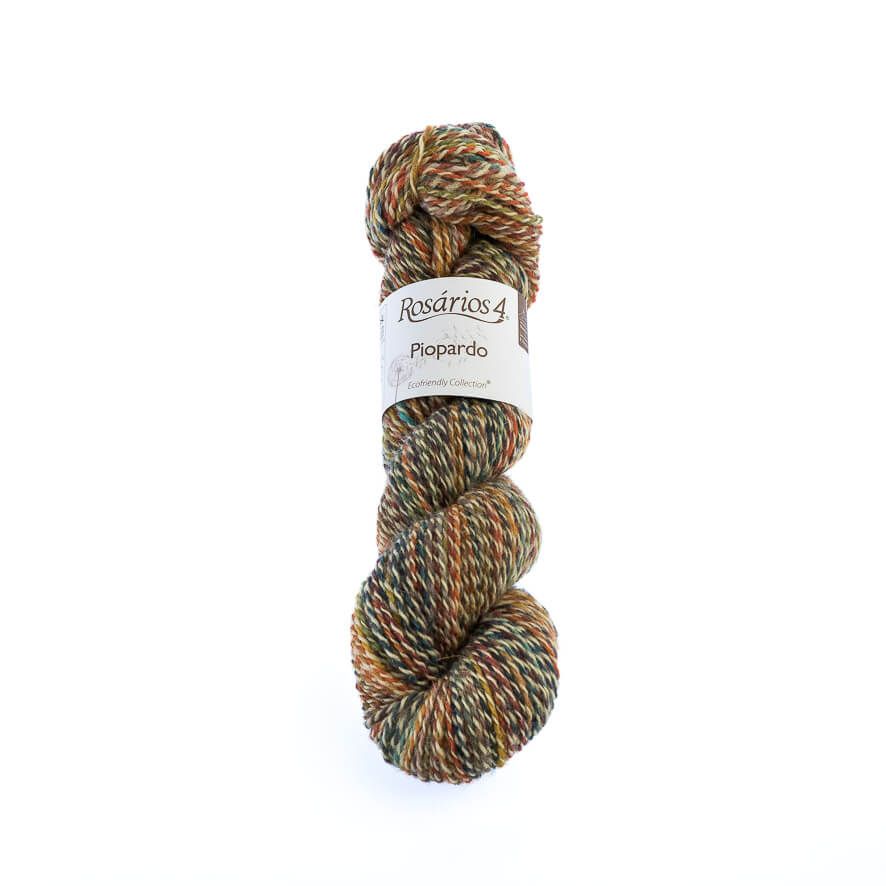 Si buscas romper la monotonía de los colores lisos sin complicarte con cambios de ovillo, Piopardo es tu lana. Su nombre lo dice todo: una base natural salpicada con pequeñas motitas ("pintas") de colores contrastados que crean un tejido vibrante y lleno de matices.